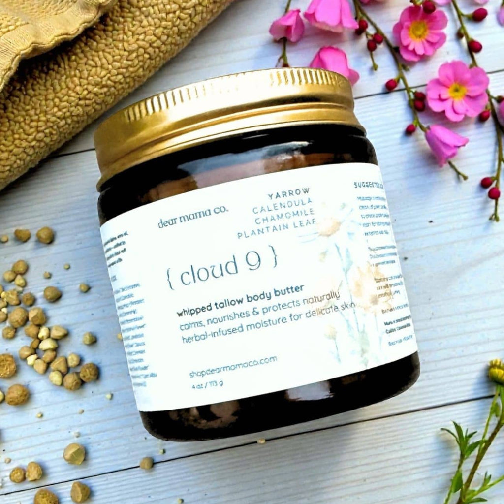 A slow-infused blend of healing herbs brings this butter to life. Our Botanical Recovery Tallow Body Butter combines grass-fed tallow with olive oil infused with calendula, chamomile, plantain, marshmallow root, yarrow, rose, and lavender to create a deeply soothing, skin-renewing moisturizer that melts effortlessly into the skin.
