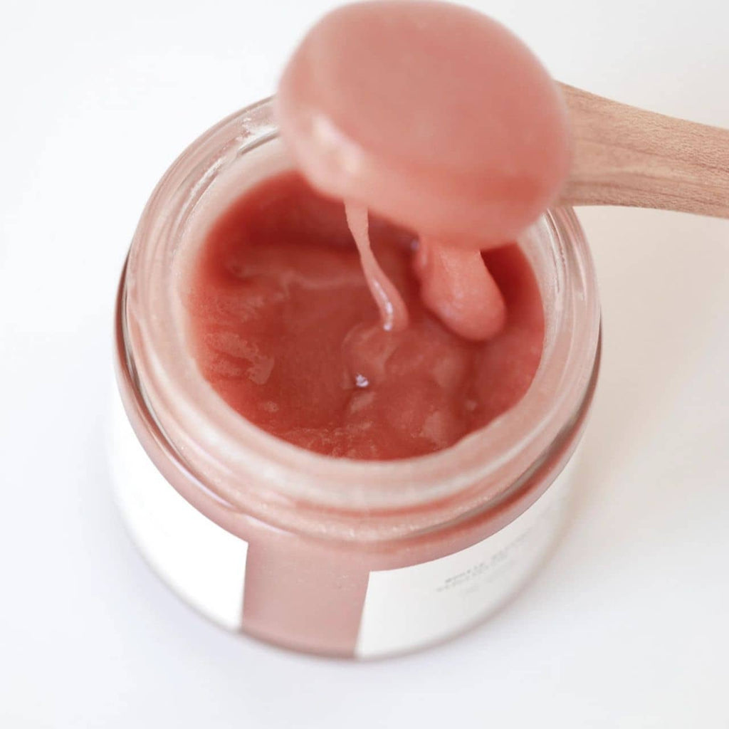 An important step to balanced skin health is exfoliation. Used once a week, this formula has been carefully alchemized to gently slough away dead cells, debris, and smoothes the surface of the skin without irritating. With an oil-free base, it will not clog pores. The raw honey actually goes to work by naturally protecting against unwanted bacteria and microbial development.